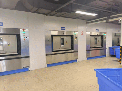 海獅目前為華西天府醫(yī)院配置了洗衣龍、衛(wèi)生隔離式洗滌脫水機(jī)、全自動烘干機(jī)、四工位展布機(jī)、自動熨平機(jī)&高速雙面燙平機(jī)、四輥熨平機(jī)、全自動高速折疊機(jī)、堆碼機(jī)、烘干龍、純蒸汽發(fā)生器、脈動真空滅菌器、純水制備系統(tǒng)等全套洗消設(shè)備。并確保所有設(shè)備嚴(yán)格按照 WST367-2012《醫(yī)療機(jī)構(gòu)消毒技術(shù)規(guī)范》、WS/T508《醫(yī)院醫(yī)用織物洗滌消毒技術(shù)規(guī)范》等標(biāo)準(zhǔn)規(guī)范的要求,設(shè)立“兩區(qū)三通道”(即潔凈區(qū)、臟污區(qū)、工作人員通道、醫(yī)用織物接收專用通道、醫(yī)用織物發(fā)放專用通道),做到工作流程由污到潔,不交叉、不逆行。并在潔凈區(qū)和污染區(qū)之間設(shè)置完全隔離屏障,實施負(fù)空氣壓阻斷,使?jié)嵨蹆蓞^(qū)之間實現(xiàn)雙通道的全封閉式實質(zhì)性隔斷,空氣不對流。