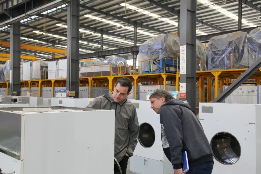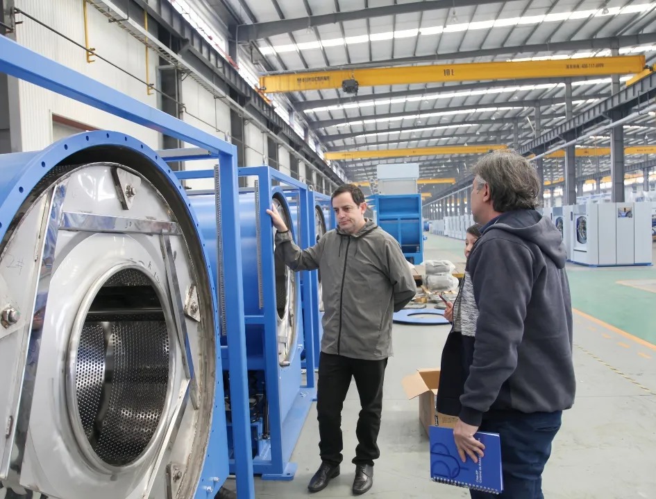 近日,海外客戶蒞臨海獅機械總部,近距離參觀了海獅洗衣龍系統(tǒng)、工業(yè)水洗機、烘干機、高速熨燙線等核心產(chǎn)品的整個生產(chǎn)裝配過程。